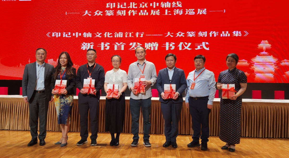 近日,“印记北京中轴线——大众篆刻作品展(上海巡展)”在上海中华艺术宫(上海美术馆)开幕。北京市文物局党组书记、局长张立新,上海市文化和旅游局党组成员、副局长罗毅,中国美术家协会主席范迪安,中国艺术研究院篆刻院名誉院长骆芃芃等多位专家学者出席开幕式并致辞,共同钤印宣布展览启幕。学校设计艺术学院师生受邀参加开幕式,并作为主要参展作品创作团队接受主办方赠书。