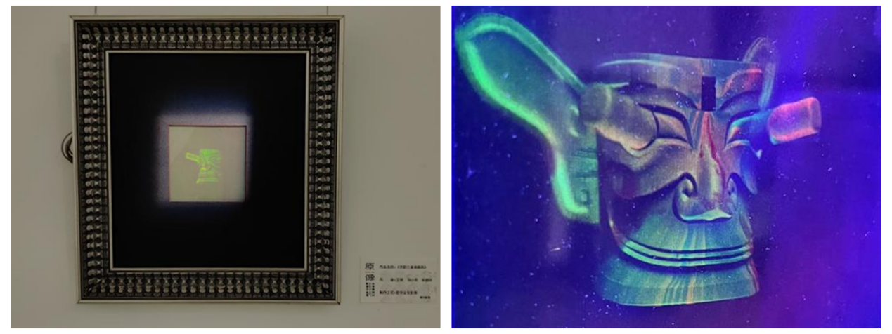 全息艺术实验室团队还协同艺术与科技,运用全息影像技术,对三星堆的“纵目大面具”进行了创新性的展示,该作品成功入选北京国际摄影周。该项目不仅精确地再现了古蜀文明的神秘与庄重,还巧妙地融入了北京京剧脸谱的元素,赋予面具独特的“京”味,使全息影像更加生动而有趣。这一创意展品旨在探索全息影像在代替实体文物展示方面的可能性,构建了古蜀文明与北京文化的时空对话。