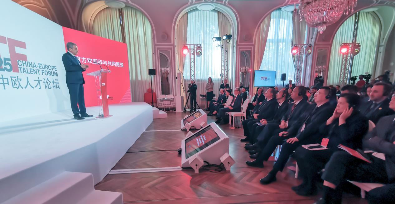 本届论坛以“共享、共生、共赢——拥抱智能时代,携手创新发展”为主题,汇聚了来自中欧政府部门、国际组织、跨国企业、高校及研究机构的150余位嘉宾,围绕人工智能与人才发展、产业转型、教育合作等议题展开深入交流。
